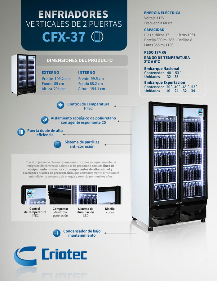 SKU:150273105 Marca: Criotec Modelo: CFX-37 4P